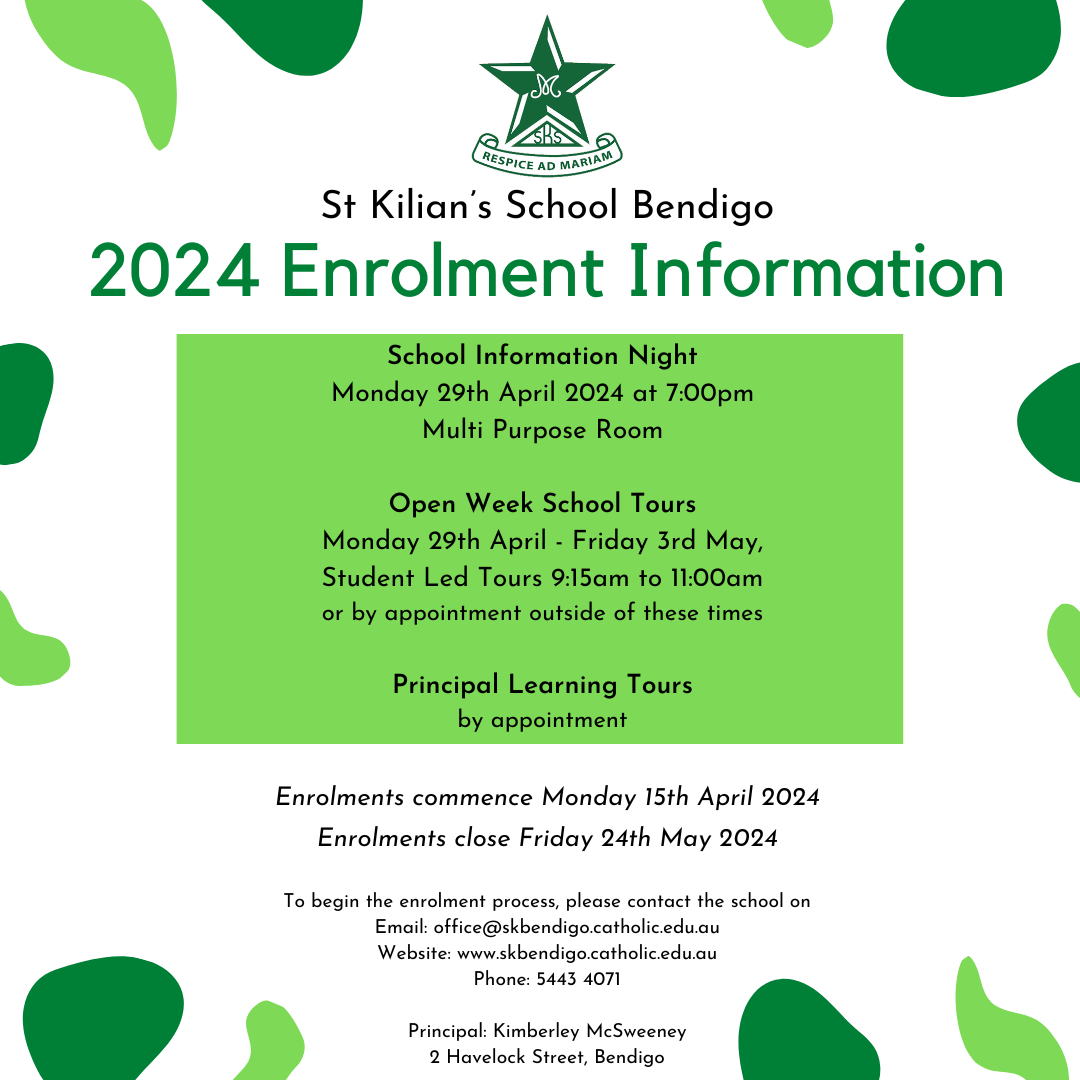 - Enrolment Policy is found here St Kilian's Primary School Enrolment Policy